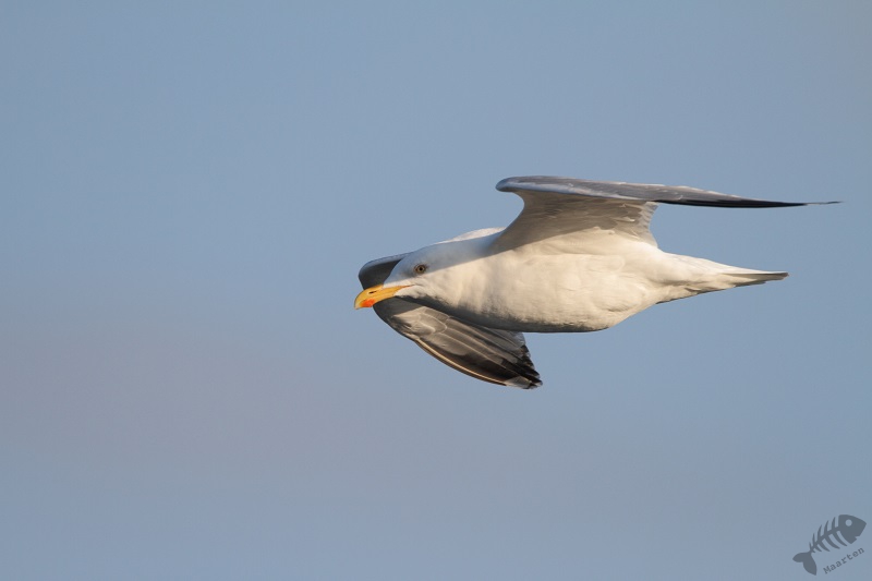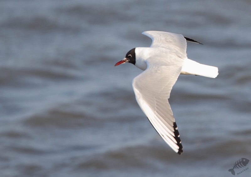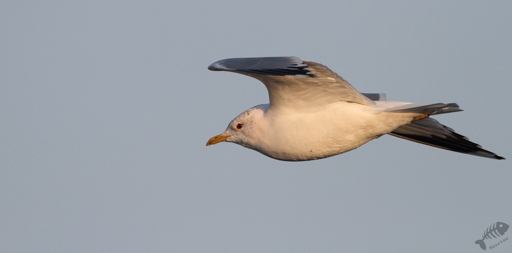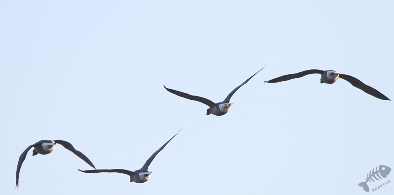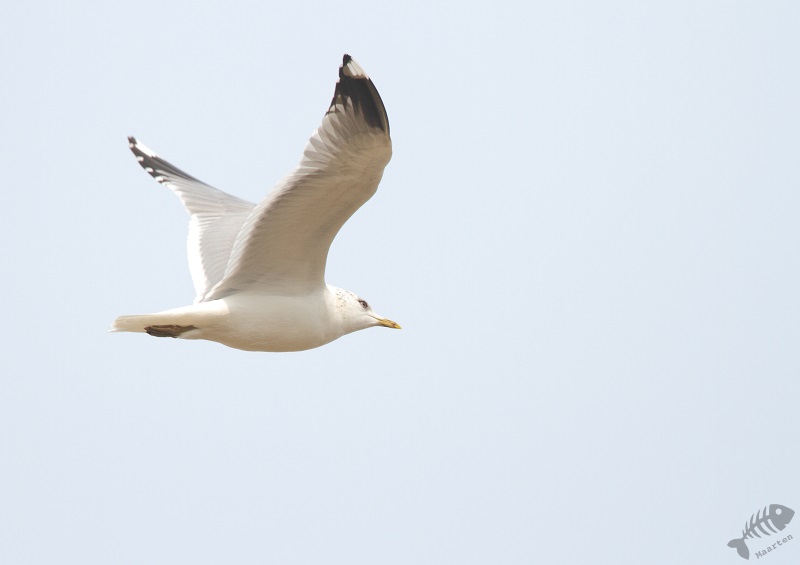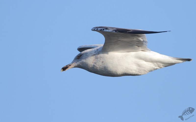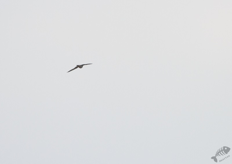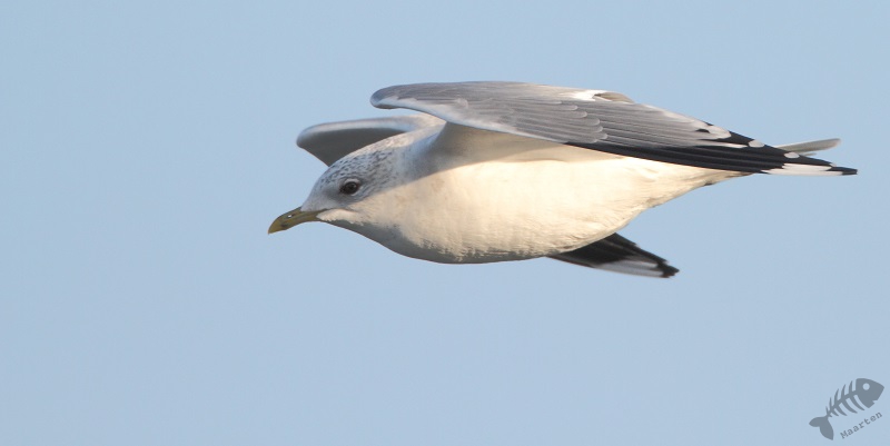 Wat me opviel was dat vanuit het zuiden continue Meeuwen aan kwamen vliegen. Kokmeeuwen, Stormmeeuwen en Zilvermeeuwen zwoegden langzaam tegen de wind in voorbij. Doordat het zo langzaam ging, gaf mij het de gelegenheid om vliegbeelden van de deze vogels te maken. Wat ik wel merkte, is dat het erg moeilijk wordt met bevroren vingers en betraande ogen nog enigszins te fotograferen: dezelfde wind waar de Meeuwen zo’n last van hadden, brak mij na een uur of zo ook op. Nadat ik alle soorten had, ben ik weer naar de auto gegaan en naar het huisje gereden.