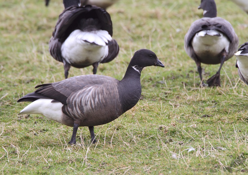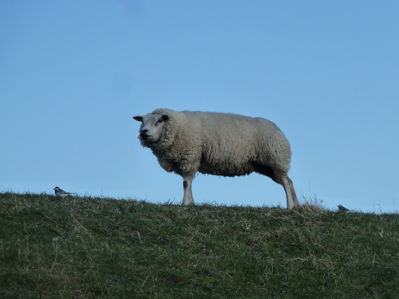 Ik ben al rondtoerend door de Polder Eijerland terug naar het huisje gereden. Onderweg langs de dijk hield ik even stil bij een groep Rotganzen. Ik had deze soort ooit eerder op de foto gezet, maar die opnamen heb ik niet meer. Deze groep bleef mooi zitten en je kon zien dat het heel mooie Ganzen zijn. In de weilanden zaten weer verschillende Meeuwen, waaronder een Stormmeeuw en vlak bij hem zat een Strandloper. Ik dacht bezig te zijn met een Bonte, maar toen ik thuis de foto’s wat beter bekeek, zag ik dat dat niet klopte. Het duurde even voor ik hem gevonden had, maar het was gelukt en ik had een nieuwe soort! Een Kanoet! Ooit wel eerder gezien (bij een kamp van het Wereld Natuur Fonds op Schiermonnikoog), maar nooit vastgelegd. Als laatste kwam ik een groep Wulpen tegen waar een Tureluurtje bij in de buurt zat en daar bleef het bij.