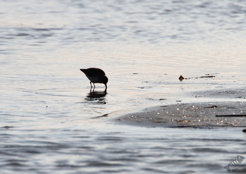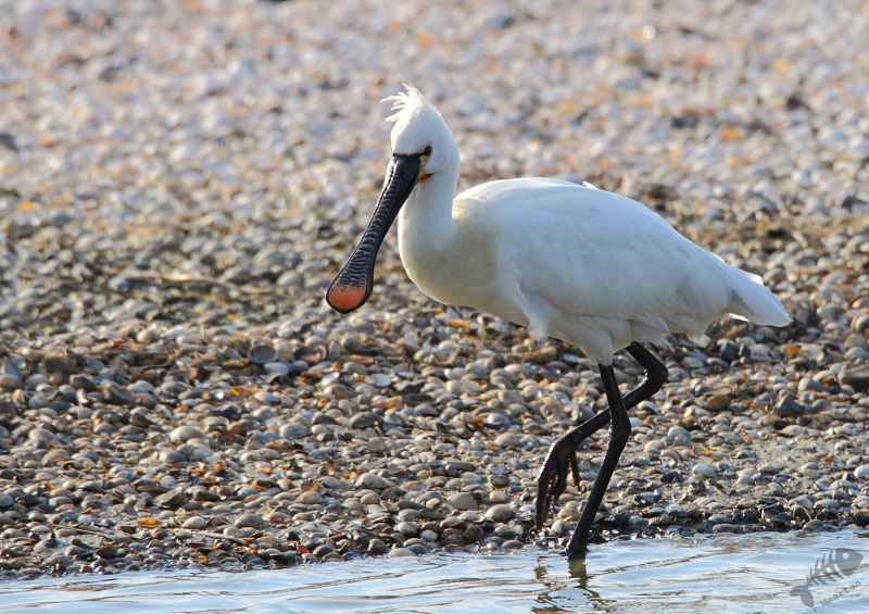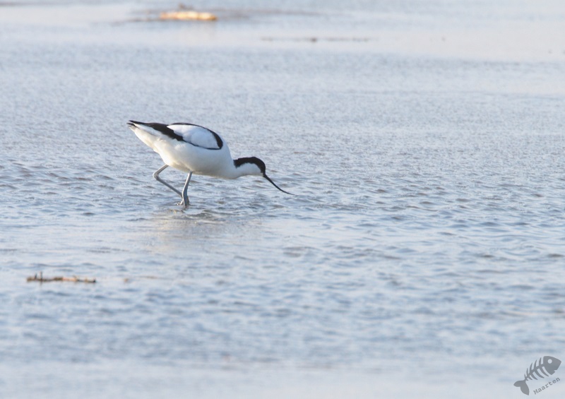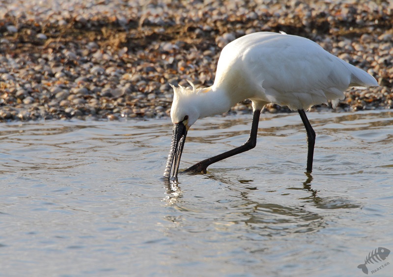 Na een uur of zo gelopen te hebben, ben ik weer naar de auto gegaan en bedacht maar weer bij de Schorren te gaan kijken. Ik ben nu eerst onderlangs de dijk gelopen en zag dat het Bontbekje er ook weer was. Na hem vastgelegd te hebben (moeilijk licht…), ben ik verder gelopen richting een Lepelaar die er druk aan het foerageren was. Toen ik was gaan zitten, kwam hij steeds dichterbij en kon ik ook van hem mooie opnamen maken. Een drukke Kluut en wat Bonte Strandlopertjes maken de lijst compleet.