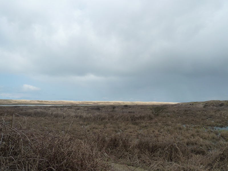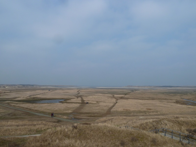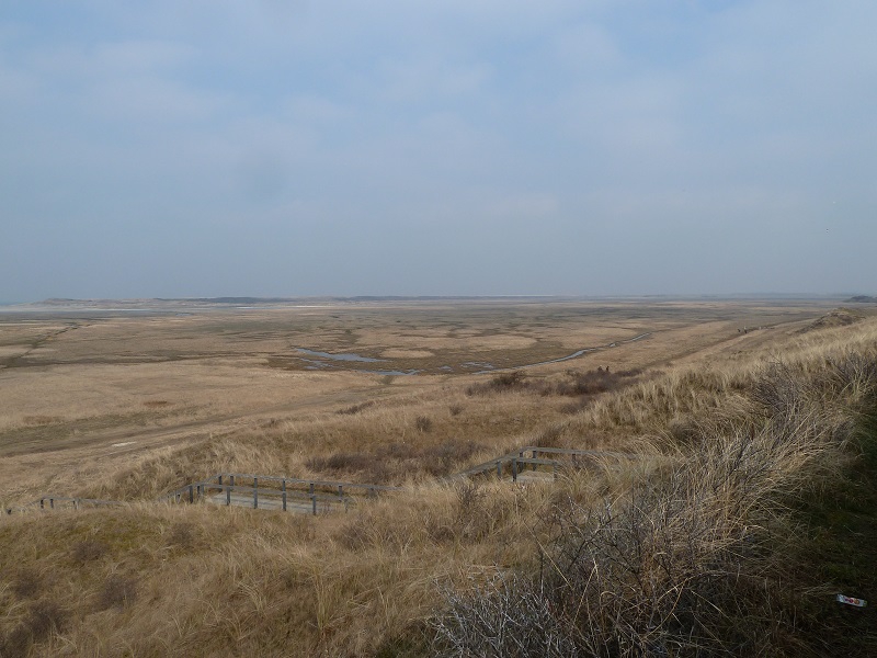 Allereerst ben ik naar de “Slufter” gereden. Dit is een groot natuurgebied in het noordoosten van het eiland. Dit gebied kende ik van naam en lag een beetje in de buurt, dus dit leek me wel een mooi begin. Ik vond de parkeerplaats vlot en ben de duin op gegaan. Vanaf daar had je een prachtig uitzicht over het gebied. Je kon ook de paden zien lopen en ik heb vanaf dit uitkijkpunt m’n route zo’n beetje bepaald: recht door het gebied richting de zee.