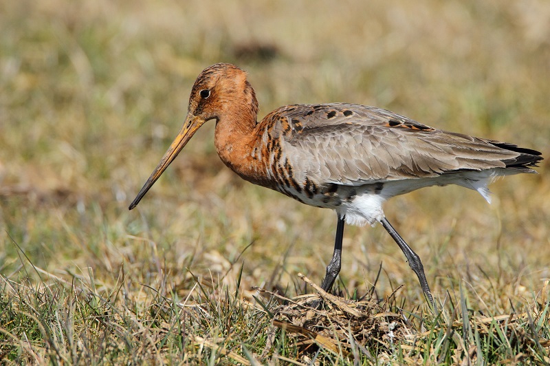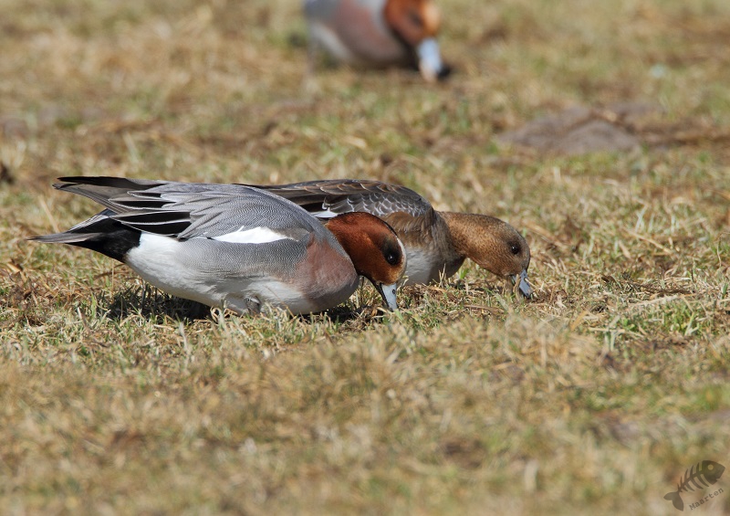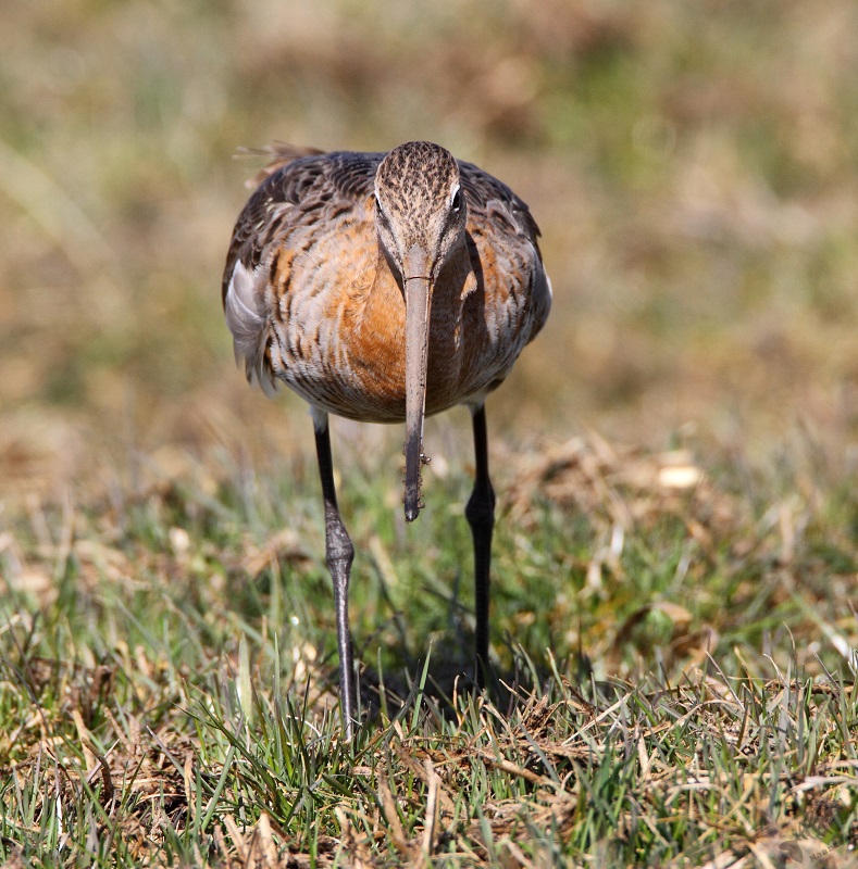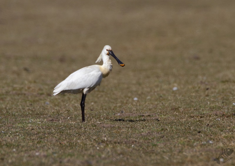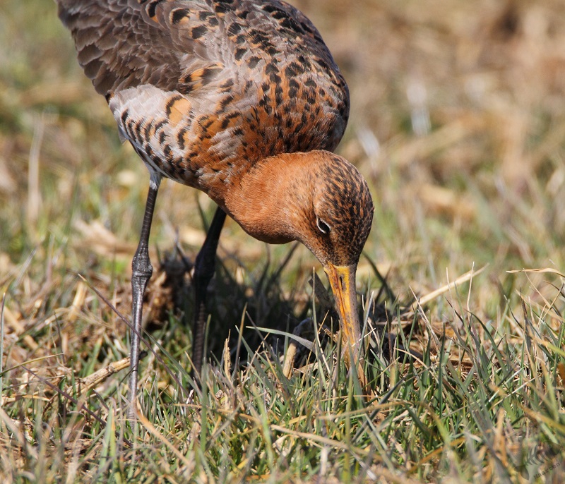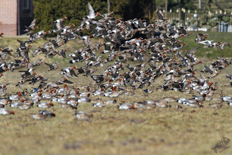 In de polder was het stralend weer, misschien zelfs een beetje te stralend: het was knoerthard licht. Toch ben ik voortvarend begonnen enkele Grutto’s vast te leggen, welke helemaal voorin in de polder zaten. Na deze ben ik doorgereden en zag een enorme groep Smienten aan het grazen. Ik had ze al eens eerder in grote groepen in het “verboden deel van de polder” gezien, maar nog niet eerder hier. Ietsje verderop liep ook een gast welke ik niet helemaal daar verwachtte: een Lepelaar liep over het weiland en ging af en toe foerageren in een sloot.