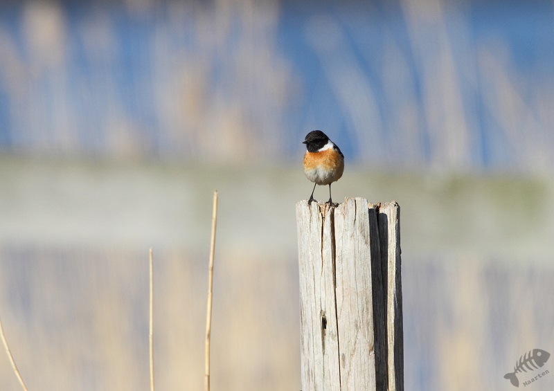 Bij het einde van het pad, waar je inslaat richting de Schollevaar, zat een koppeltje Roodborsttapuitjes. De mannetjes hiervan zijn toch zo schuw! Toch vond ik het plaatje met de blauwe achtergrond helemaal nog niet zo gek.