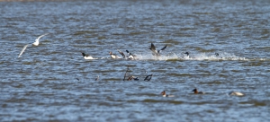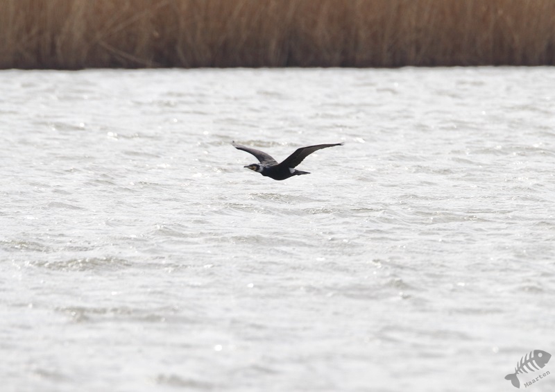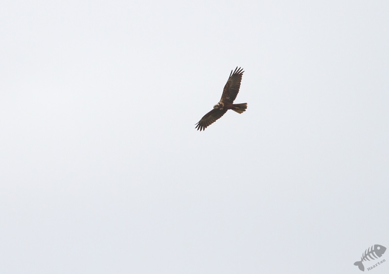 De meeste vogels heb uiteindelijk vanuit de hut gezien. Natuurlijk zaten de Aalscholvers er weer. De plas werd ook regelmatig vliegend overgestoken door allerlei andere vogels: Blauwe Reigers, Zilvermeeuwen en Bruine Kiekendieven. Deze laatsten heb ik alleen op grote afstand, aan de overkant van het water, kunnen vastleggen. Het waren er toen wel gelijk 3 bij elkaar!
