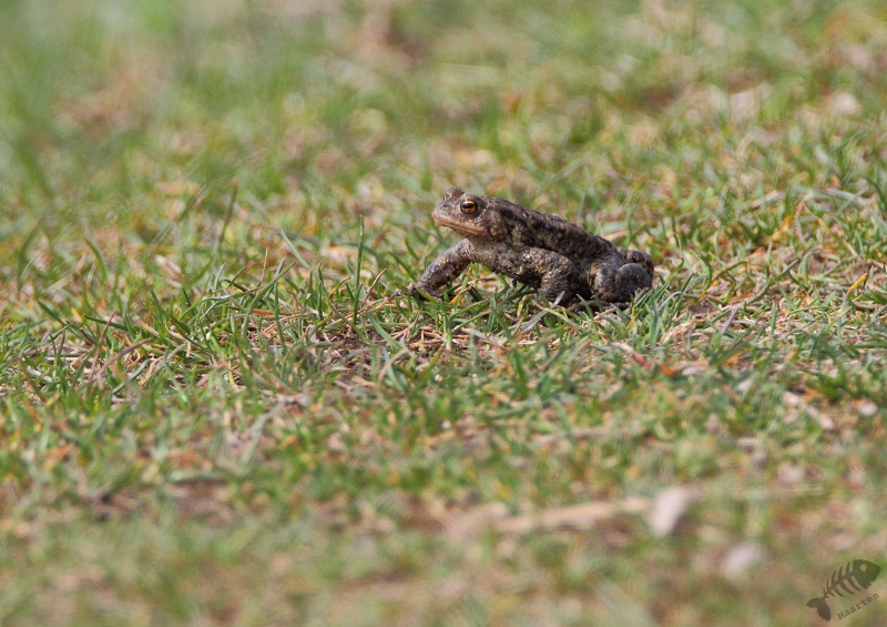 Tijdens het wachten tussen de Blauwborst-bedrijven door, kwam een Pad even kijken wat ik samen met 2 medefotografen aan het doen was. Ook een Bruine Kiekendief wilde van wat grotere hoogte zien wat er beneden allemaal gebeurde.
