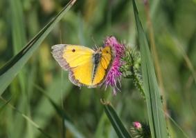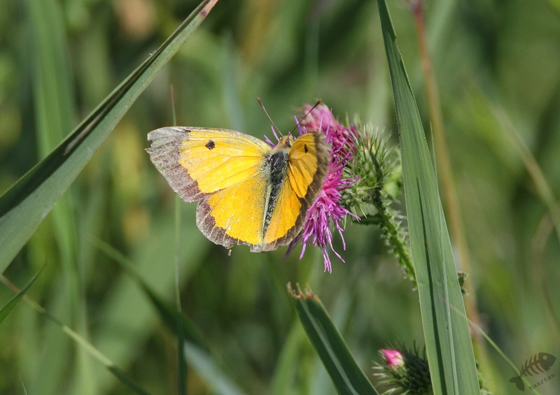 Ik ben dus weer teruggegaan en zag op het pad een oranje Vlinder welke ik niet meteen thuis kon brengen. Hij leek vrij schuw wat het lastig maakte hem te fotograferen (zelfs met 500mm), maar het lukte. Het bleek een Oranje Luzernevlinder te zijn. Voor mij weer een nieuwe soort. Heel leuk! Als laatste zag ik nog een Oeverzwaluw en een Bruine Kiekendief. Rond 3en ben ik weer richting Ede gegaan. Het was weer een geweldige dag! Maar liefst 2 Tapuiten en een Paapje! Nu deze nog in broedkleed…