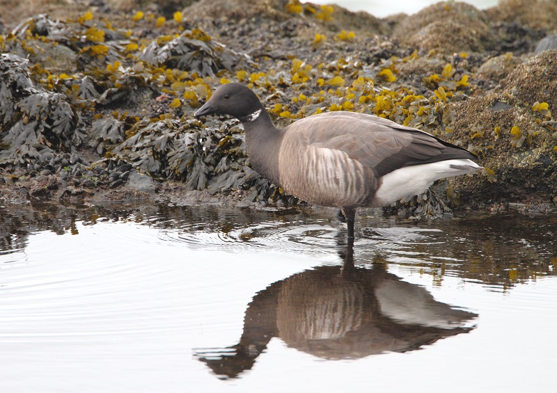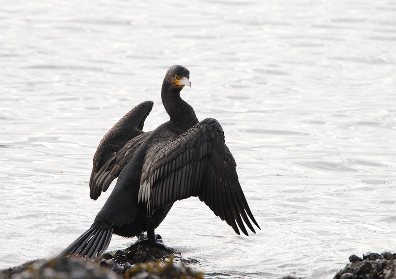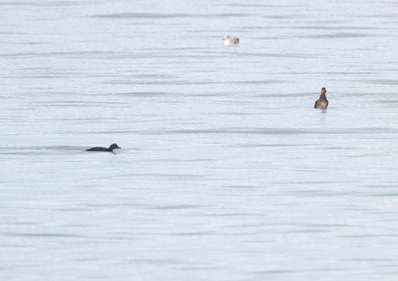 Daarna zijn we verder naar het zuiden gereden en zijn gestopt bij de Spuisluis. Hier onderaan de dam stonden enkele Rotganzen in een plasje: een mooie manier om ze eens beter te zien. Bij de sluis zelf stond een Aalscholver heel karakteristiek te wezen wat een heel fraaie foto opleverde. Maar ook hier werd weer een nieuwe soort voor me gevonden: een koppeltje Zwarte Zee-eenden zwom ook wat verder uit de kust. Heel gaaf!