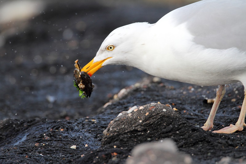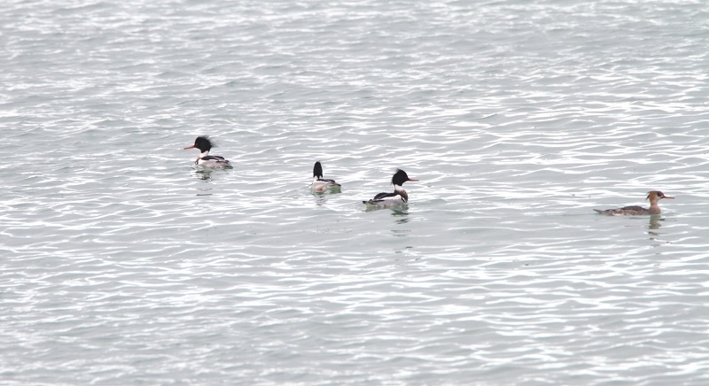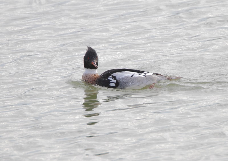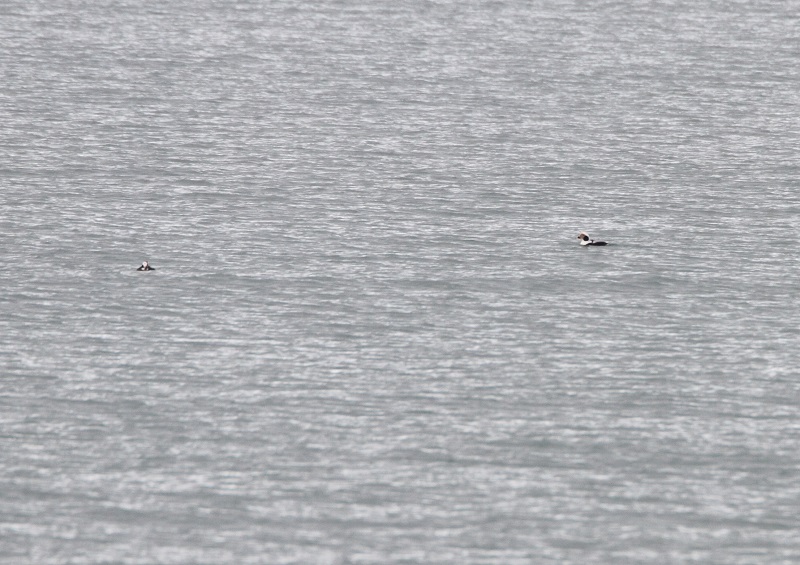 Nadat we alles goed bekeken hadden, zijn we doorgereden naar de Brouwersdam. Arie wist daar de interessante plekken, waardoor ik veel meer te zien kreeg dan de eerste keer dat ik er was. Als eerste stopten we bij de Haven aan de noordkant van de dam. Dat kende ik wel van mijn eerste bezoek en zelfs een zelfde soort zat er weer: een Zilverplevier. Verder liepen er Zilvermeeuwen en Steenlopertjes rond welke vanuit de auto mooi te fotograferen waren. Met zijn telescoop had Arie verder op de Noordzee nog vogels ontdekt. Een groepje Middelste Zaagbekken maar ook een koppeltje IJseenden zwom wat verder uit de kust! Een heel nieuwe soort voor mij. De afstand was eigenlijk te groot om er foto’s van te maken, maar het lukte toch om ze herkenbaar af te beelden, dus ik was helemaal blij.