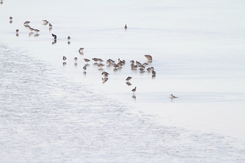 Als eerste zijn we gestopt bij de Stellendam. Vanaf de strekdam kijk je uit over de Kwade Hoek, iets wat ik tijdens mijn vorige bezoek niet gedaan had. Arie ging bezig de Kwade Hoek te scannen met zijn telescoop terwijl ik in de haven druk in de weer ben geweest met een Middelste Zaagbek. De vogels aan de andere kant zaten eigenlijk nét te ver weg om mooi te kunnen fotograferen zoal de foto’s van de Wulp en de Tureluurs laat zien.