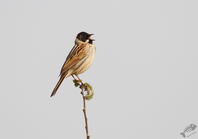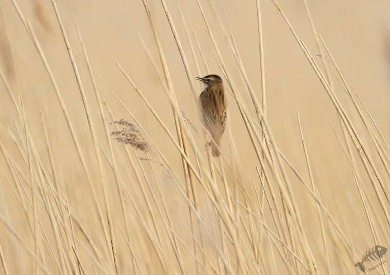 Omdat het vorig jaar september zo goed bevallen was, hadden Arie en ik afgesproken dat we in het voorjaar weer een bezoek zouden brengen aan de Wieden en de Weerribben. Wegens volle agenda’s konden we alleen vroeg in het voorjaar en zo zijn we op 1 april weer afgereisd naar het noorden. Omdat er bij het bezoekerscentrum mooie rietvelden lagen, en ik erg hoopte op voorjaarsrietzangertjes, zijn we eerst hiernaartoe gegaan. Tot onze verbazing bleek een groot deel van het riet te zijn gemaaid! Net achter het beziekerscentrum stond nog wel iets, dus zijn we hier eerst maar doorheen gelopen over de vlonderpaden. Eerst hebben we het begin van het Laarzenpad gelopen. Daar stond nog redelijk wat riet en vanaf een observatieplateau kregen we 2 echte rietbewoners in beeld. Er vloog als eerste een Bruine Kiekendief over terwijl we het riet afspeurden naar Rietzangertjes. Even later kregen we ook deze mooi in beeld. Omdat het hier verder heel rustig leek, zeker door de afwezigheid van riet verderop, zijn we weer teruggelopen richting het bezoekerscentrum en zijn toen Vlonderpad afgelopen. Vanaf daar hoorden we heerlijke voorjaarsgeluiden: een baltsende Watersnip met zijn blatende geluid! Heel vaak heb ik dit geluid niet gehoord en ik vind het dan ook heel bijzonder als ik het weer eens hoor. Op dezelfde plek vanwaar we de Snip hoorden, zat een Rietgors volop te zingen en terwijl ik bezig was deze vast te leggen, kwamen er verschillende Pimpelmeesjes naast ons zitten. Verderop leek het weer rustig en toen hebben we besloten de auto te pakken en weer naar de boten verhuur te gaan en ons geluk vanaf het water te gaan beproeven.