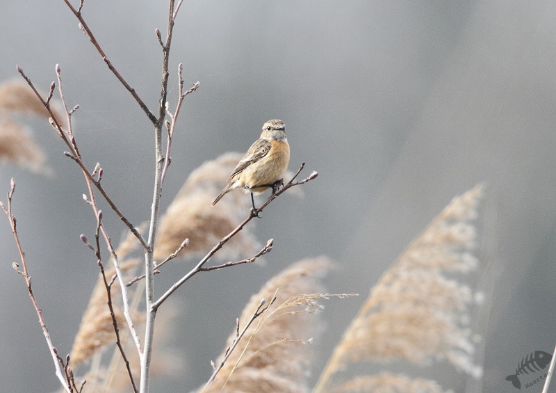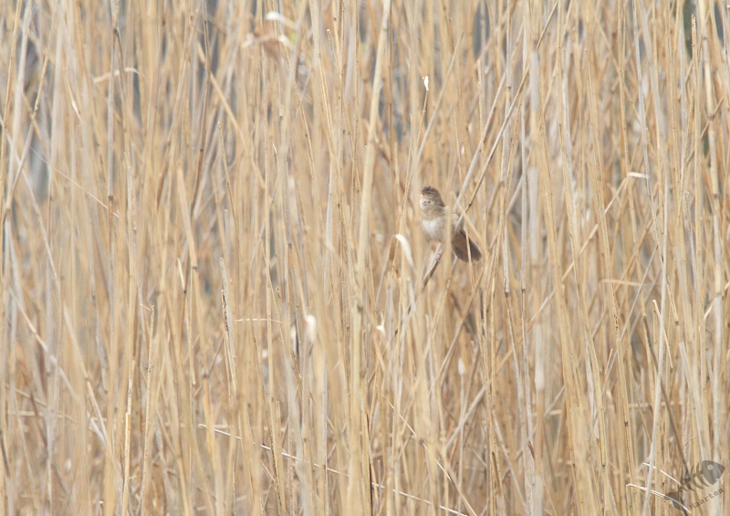 Toen we weer in het bootje zaten en het gebied invoeren, zagen we al snel dat hier hetzelfde aan de hand was als bij het bezoekerscentrum: ook hier leek 90% van het riet gemaaid te zijn. Ik had deze trip mijn hoop enigszins laten vallen op mooie foto’s van de Snor, maar zag door de eindeloze stoppelvelden dat de hoop voor niets zou zijn. Wel hoorden we heel veel Tjiftjaffen, héél vééltjiftjaffen! Andere zangertjes hebben we nauwelijks gehoord of gezien. Het vrouwtje van de Roodborsttapuit kwam even om de hoek kijken en een heel voorzichtige Blauwborst liet zich even horen (met een wat afwijkend liedje, best bijzonder…), maar gelukkig maakte de Snor toch ook nog even zijn opwachting. We hoorden er 1 zingen bij een kruispunt van waterwegen waar nog aardig wat riet stond, maar deze liet zich nauwelijks zien. Toen we enige tijd in de buurt gelegen hadden en wat afstand namen, kwam hij redelijk naar voren en lukte het me om hem vast te leggen. Nog geen optimaal plaatje, maar ik had hem weer!