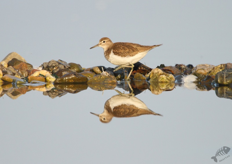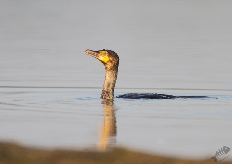 Nadat hij weer verdwenen was, kwam de eerder genoemde Oeverloper aanlopen. Hier kon ik me wat langer mee bezighouden en kon ik heel mooie opnames maken. Ook verscheen er nog even een Aalscholver, die voorbij zwom en niet heel veel actie liet zien.