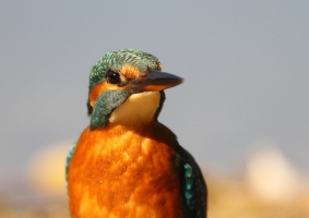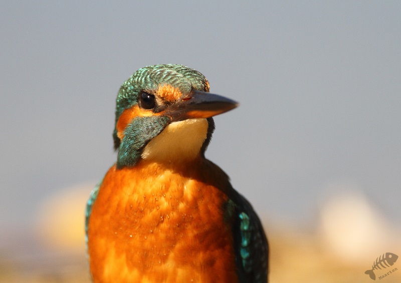 En na een uurtje werd het ineens weer IJsvogeltijd. Ze verschenen nu zeer regelmatig en af en toe heel dichtbij, soms zelfs té dichtbij (min. scherpstelafstand van m’n lens is 4,5m. ). En tot 2 keer toe werd de hut aangevallen door zo’n opgewonden standje. Vandaar dus die netten voor het glas (niet dat ze deze raakten, maar ik snap wel waarom ze er zaten…).