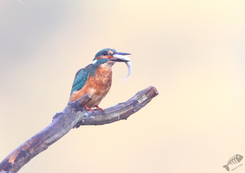 Het begon allemaal lekker rustig. Een voorbij vliegende Blauwe Reiger opende de voorstelling, waarna ik me nog wat bezig heb gehouden met de belichtingswaarden te bepalen. Na een half uurtje verscheen ineens de eerste IJsvogel. Hij bleef eerst nog wat op afstand, maar ving al vrij snel een visje waarmee ik hem mooi kon vastleggen.