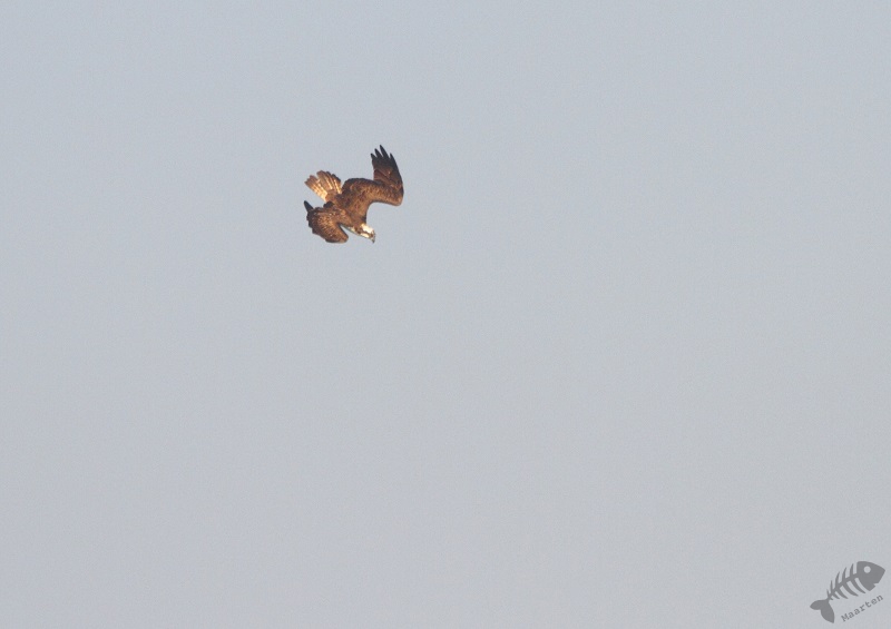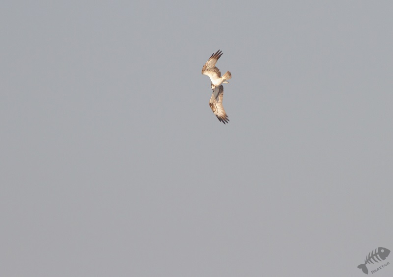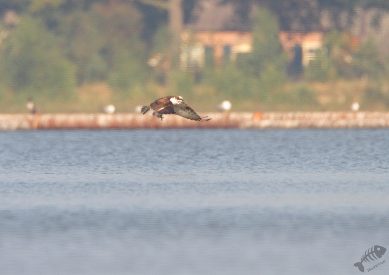 Maar opeens zag ik in de verte een Visarend! Hij vloog wat rond, maar zette plots een duikvlucht in en greep een vis uit het water. Het gebeurde op grote afstand, maar in 3 opnamen heb ik wel de hele actie vastgelegd. Wat gaaf!