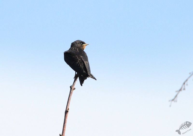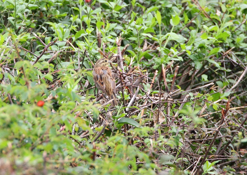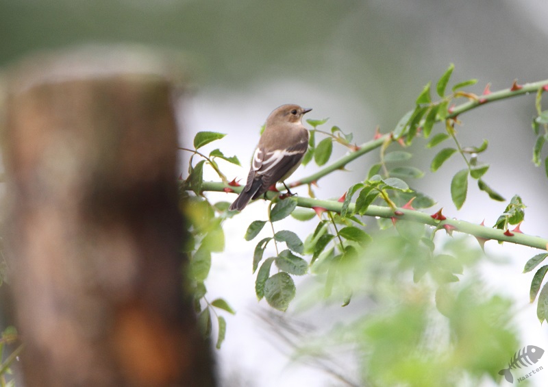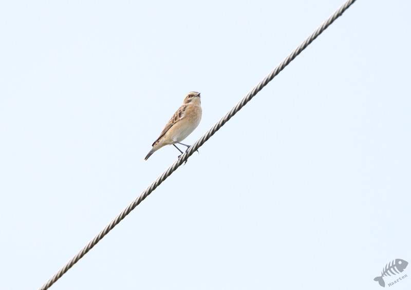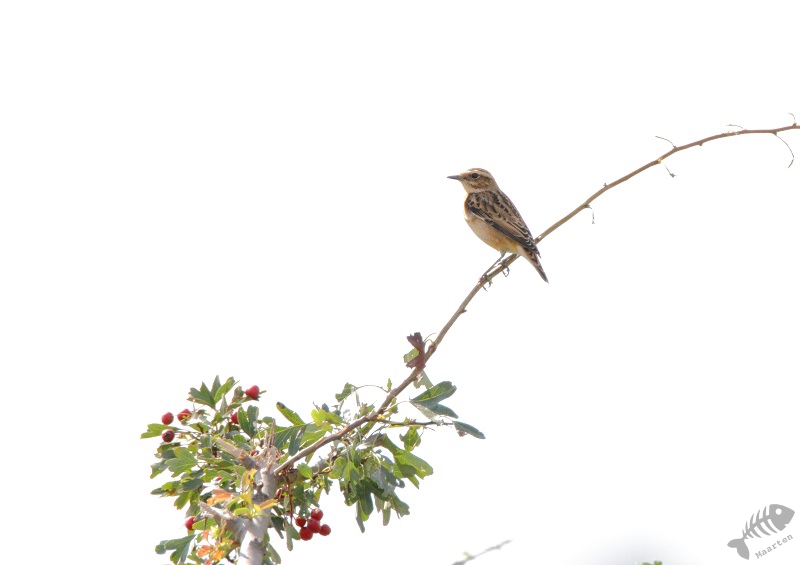 En dat zou zo’n beetje de rode draad van mijn vogel-activiteiten worden. De vogels aan de toegangsweg bleken voor een groot deel Paapjes te zijn. Ze kwamen niet voor op de lijst, dus het zouden wel doortrekkers zijn. Ze zijn wel de volle 2 weken dat wij er waren gebleven en het is me uiteindelijk gelukt er mooie foto’s van te maken. Daarvoor heb ik wel mijn tactiek moeten aanpassen. De eerste paar dagen ben ik lopend het weggetje op en neer gegaan. De Paapjes, maar ook de Roodborsttapuiten welke er bleken te zitten, waren daar niet zo van onder de indruk en bleven niet op me wachten.