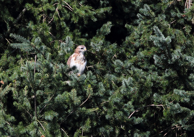 Wat ook niet hielp was dat ik die eerste paar dagen alleen tussen de middag de tijd nam om naar buiten te gaan. Het licht was knoerthard en de temperatuur was ook niet optimaal om te gaan sjouwen met foto-spullen. Ik heb dus niet zoveel vastgelegd in het begin. Later ben ik er vaker juist ’s avonds op uitgegaan en met de auto om deze als schuilhut te gebruiken. Op het laatst, na bijna 2 weken, is het me gelukt de plaatjes te maken waar ik op hoopte. Alleen waren er helaas geen mannetjes in volle pracht bij. Zouden deze hier dan toch in het voorjaar…? Ook de Roodborsttapuit heb ik op dit weggetje vastgelegd, evenals de Geelgors en de laatste dag ook nog wat Kneutjes. Deze vertoonde wel hetzelfde gedrag als in Nederland: ze bleven ver van me vandaan. Tijdens één van de tochten trof ik ook nog een Bonte Vliegenvanger en af en toe zag ik ook hier Buizerds vliegen.