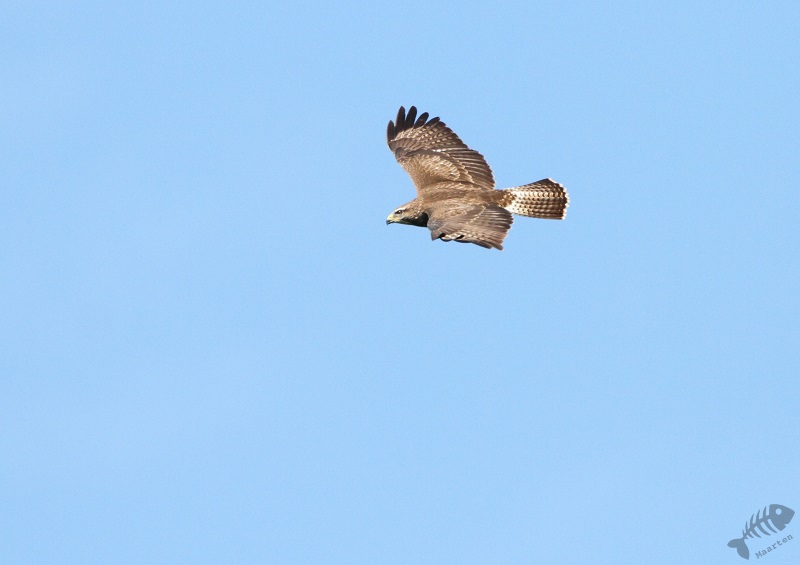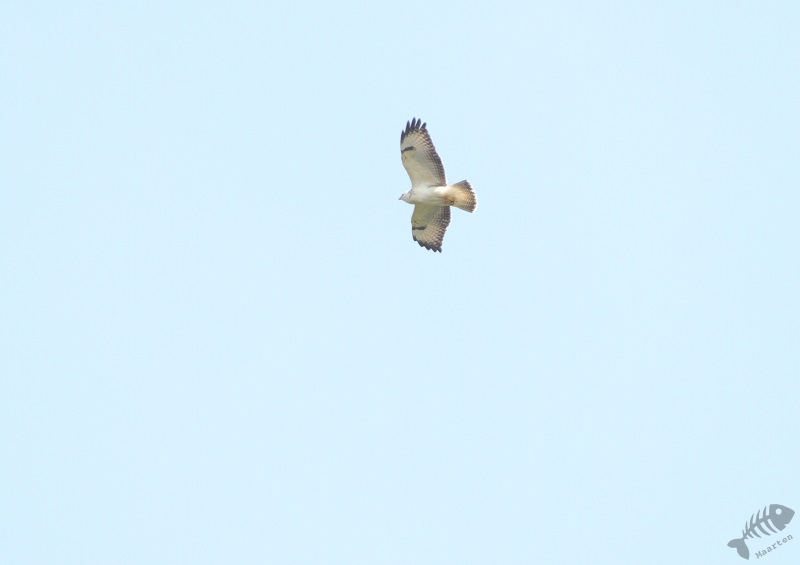 Na een aantal dagen ben ik mijn waarnemingsgebied gaan uitbreiden. Ik ben in de auto wat kleine weggetjes tussen de akkers door gaan berijden, benieuwd of ik nog wat soorten van de lijst zou tegenkomen. Bij de toegangsweg naar de camping, een steile, slechte weg, zag ik al snel verschillende vogels wegvluchten. Ik kon met geen mogelijkheid zien wat ze waren, dus ik zou hier wat vaker en langer moeten gaan observeren. Maar eerst wilde ik meer van de omgeving gaan zien. Al snel kwam ik langs wat velden waar grotere elektriciteitsmasten overheen liepen en daar vond ik de eerste,