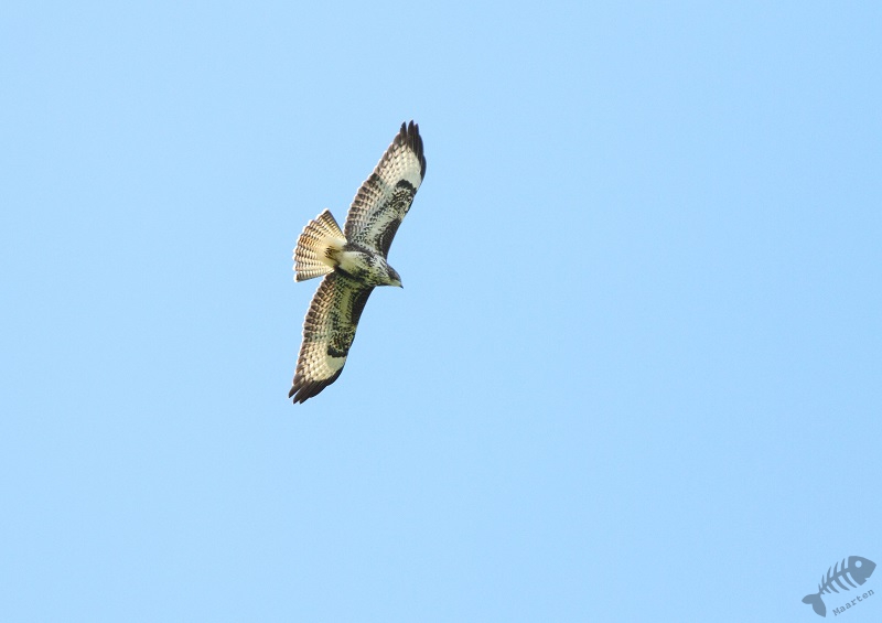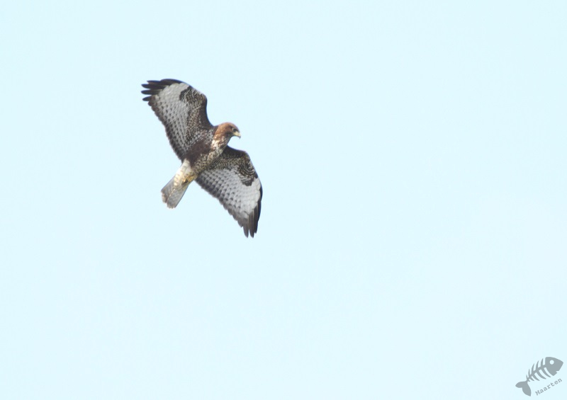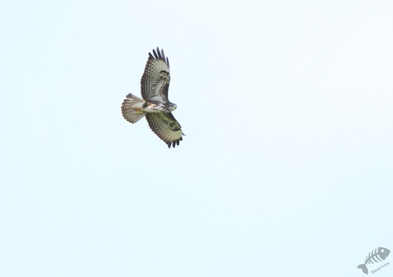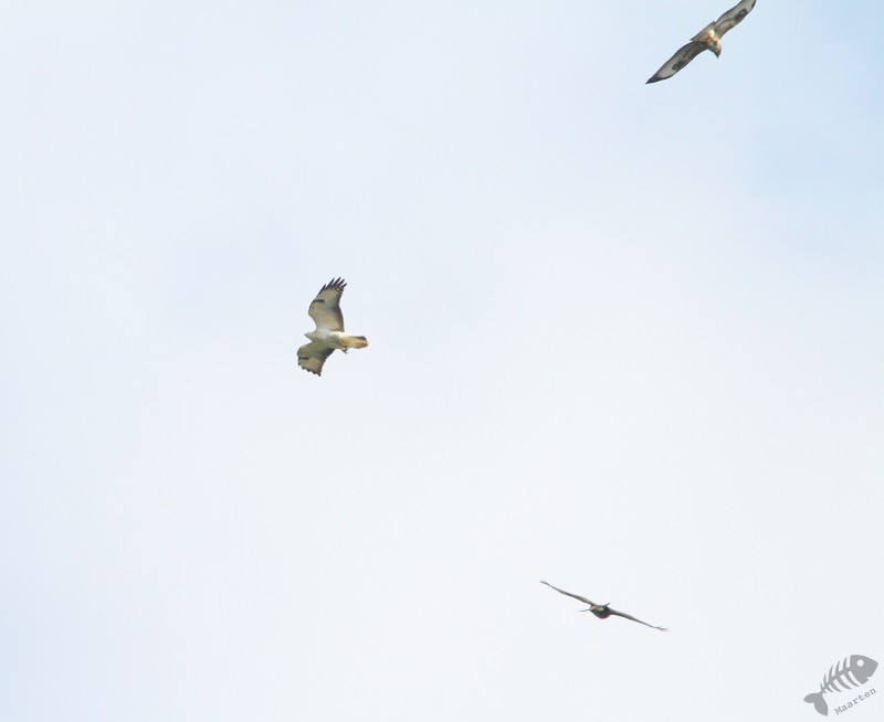 Voor de Buizerd hoefde ik niet veel moeite te doen. Verschillende exemplaren vlogen regelmatig over of vlak voor de camping. Toen ik eenmaal in de gaten had hoe de vliegbewegingen ongeveer waren, is het me gelukt fraaie beelden te maken. Terwijl ik daarmee bezig was, hoorde ik ook regelmatig het geluid van een Groene Specht. Gijs, de eigenaar van de camping, gaf aan dat hij deze nog wel eens zag vliegen en dat hij ook wel eens de camping had bezocht. Dus: wie weet, zou het hier in Frankrijk dan eek=n keer lukken deze wenssoort vast te leggen…