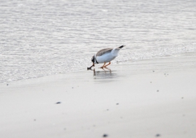 Op waarneming.nl had ik regelmatig gezien dat aan de Oosterscheldekering, bijvoorbeeld bij Neeltje Jans, ook heel veel te zien kan zijn. We zijn dus verder gereden naar de Oosterscheldekering om eens te zien hoe het daar werkelijk is. We zijn de dam opgereden en zijn bij de buitenhaven op Neeltje Jans gestopt. Vanaf daar hebben we de strekdam afgelopen. Helaas was ook hier in eerste instantie niet zo veel te zien, maar het zien van 2 Bontbekplevieren maakte het al de moeite waard.