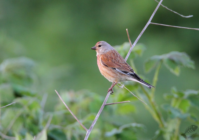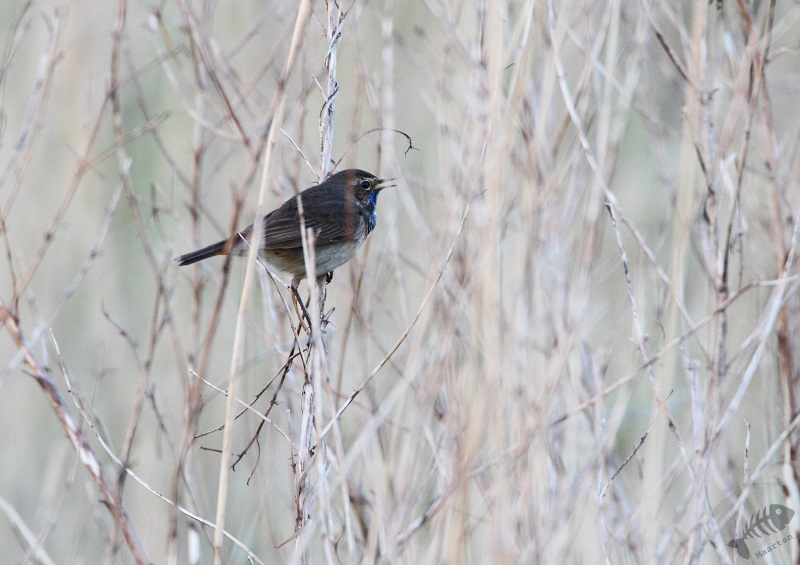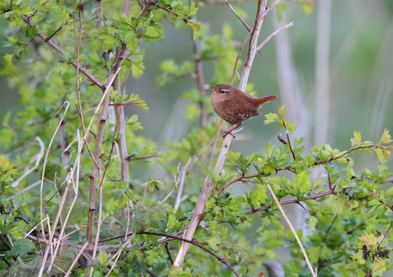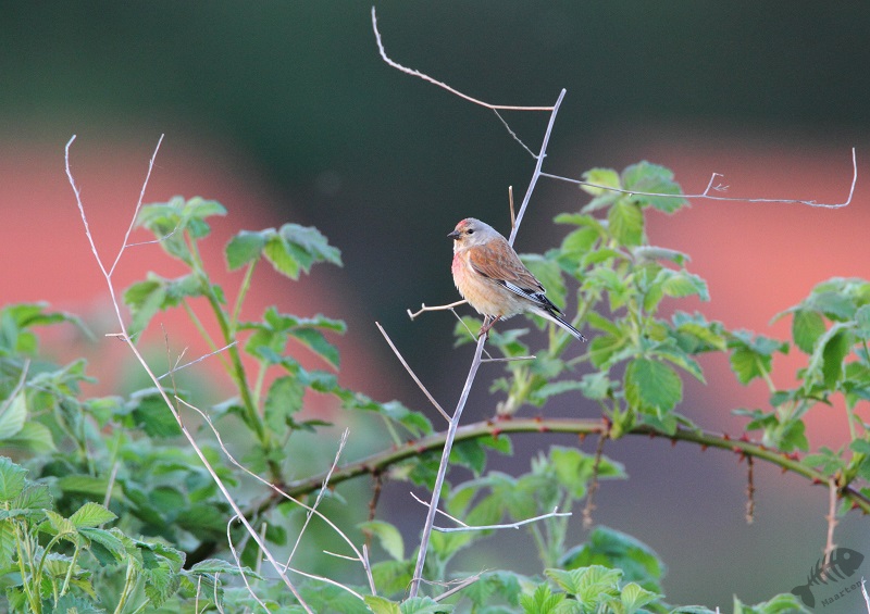 Ik ben toen maar weer terug gelopen en bijna aan het einde van het gebied zaten ineens verschillende Kneutjes in een Braam. Tot mijn grote verbazing en vreugde, bleven ze aardig zitten en lukte het me dus heel aardige plaatjes van deze mooie soort te maken. Jammer was wel dat het steeds donkerder werd en de ruis in de opnamen begonnen was zich te laten gelden. Net voor het opstapje over de draad kwam ik nog een laatste Grasmus tegen. Ook deze bleef nu wel aardig zitten en in het licht van de ondergaande zon, leverde dit een best heel fraai plaatje op. Ik ben toch nog een klein stukje richting de steenfabriek gelopen in de hoop Sprinkhaanzangers te horen of te zien, maar zij blonken uit in afwezigheid. Dat had ik dus niet meeberekend in mijn fantastische plan… Een ijverig Winterkoninkje liet zich nog wel vastleggen en in het allerlaatste licht vond ik nog een zingende Blauwborst. Een mooie afsluiter van een aardig geslaagde avond. Maar…: je kunt nog zo’n fraai plan hebben, de natuur laat zich niet regisseren.