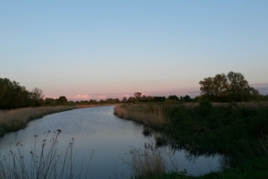 Tijdens het vorige bezoek kwam ik op een tijdstip bij het veld waar de Sprinkhaanzanger zat toen de zon bijna pal tegen was. Als ik nu eens ’s avonds zou gaan, was de zon daar weg en scheen juist mooi over het veld! Zo’n plan kon toch niet mislukken?