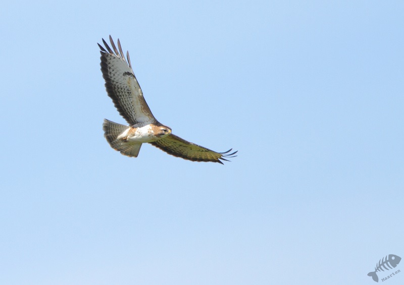 Ook de 3de dag heb ik het “rode rondje” gereden. Bij de weiden met de Grauwe Klauwier zag ik al snel weer een verschijning tussen het gras door. Het bleek weer een Grauwe Klauwier te zijn, maar nu een vrouwtje. Deze had ik nog niet gezien, dus kwam ze er mooi bij! Het mannetje blonk uit in afwezigheid, waardoor ik snel klaar was met m’n rondje. Ook nu weer werd ik verrast door roofvogels bij de camping. Nu was het alleen een soort welke ik vorig jaar veelvuldig had gezien. Er zweefde een Buizerd laag over de omliggende weiden waardoor ik ook nu weer mooie foto’s van deze altijd fraaie vogel kon maken.
