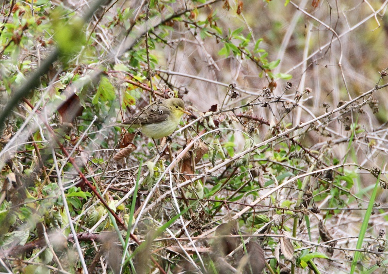 De één-na-laatste dag ben ik er nog 2 keer op uit geweest. ’s Ochtends heb ik de “gele route” weer gedaan en ik kreeg weer de gelegenheid de Grauwe Klauwier op zijn vaste stek vast te leggen. Verder zat er nog een Buizerd aan het einde van een weide. Daar was het bij gebleven tot ik weer vlak bij de camping was. Ook nu werkte een Geelgors heel mooi mee en zat zelfs bijna te dichtbij! ’s Avonds ben ik nog een keer gegaan. Ik stond aan het begin van het steile pad om af te dalen naar de “rode route” toen ik iets kleins zag scharrelen. Ik heb snel mijn verrekijker gepakt en tot mijn verbazing bleek het een mannetje van de Cirlgors te zijn! Snel heb ik enkele foto’s gemaakt, om hem maar te hebben, en toen hij ergens anders ging zitten ben ik verder gegaan. Bij het dode struikje waar ik mijn eerste mannetjes Cirlgors vastgelegd had, zag ik nu een Spotvogel. Alleen: ik ben gaan twijfelen. Het kan ook een Fitis zijn en ik kan de pootjes niet voldoende terugzien om het met zekerheid te zeggen… Dat bleek niet het enige waar ik me mee bezig moest houden. Ook nu kwam hier weer een Cirlgors, en weer stond mijn camera niet optimaal waardoor ik een bewogen plaatje kreeg. Ik ben daarna een aantal keer voorbij deze plek gereden, elke keer de auto snel in de tegenoverliggende berm gezet en één van de laatste keren, het licht werd al minder, kreeg ik hem weer in beeld! Het lukte me om een paar aardige foto’s te maken, al lag de focus niet helemaal goed, maar ik was redelijk tevreden. Daarom kon ik weer rustig terug en werd ik nog even opgehouden op het steile pad door een Grauwe Klauwier en een Roodborsttapuit. Weer op de laatste dag was het toch weer gelukt!