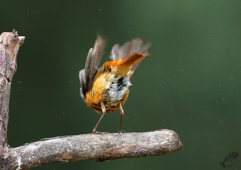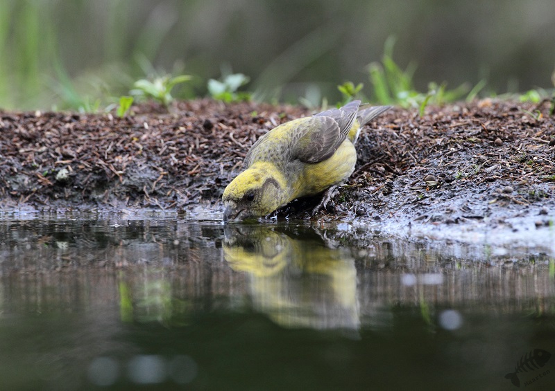 Tot m’n plezier kwam ook de Roodborsttapuit weer een bad nemen. Vorig jaar was dit één van de grote afwezigen, nu had ik hem dus weer. Ook een hele mooie soort! Na nog meer Geelgorzen, een Groenling en een Fitis, kwam er een Kruisbek heel vluchtig kijken. Dit is toch wel één van de soorten waarvoor je naar deze hut komt.