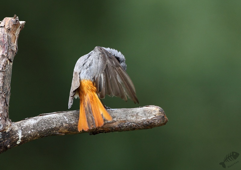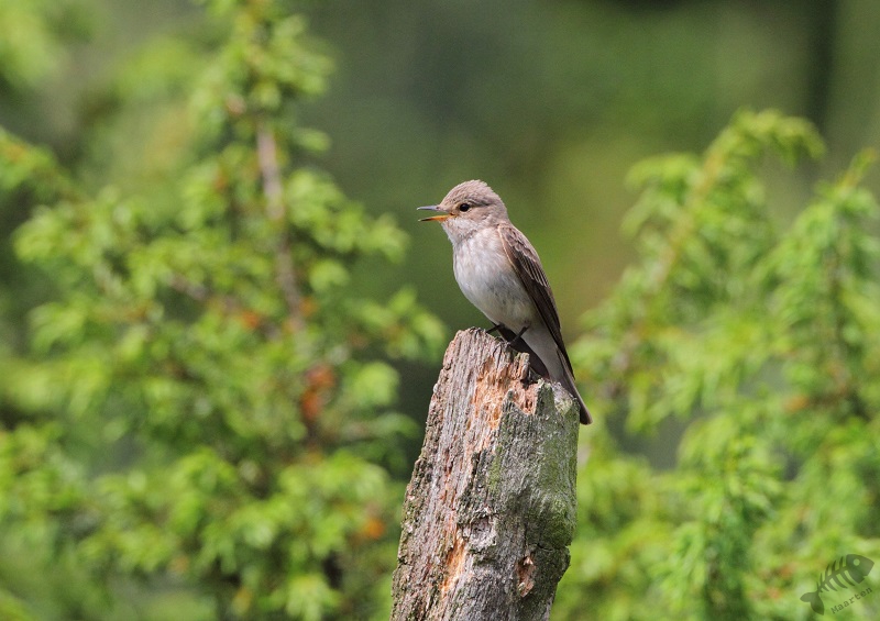 Na het intermezzo werd de middag toch weer interessant. Het begon met een vrouwtje van de Gekraagde Roodstaart, gevolgd door opnieuw een Kruisbek en Puttertjes. Iets daarna was het een Grauwe Vliegenvanger, die ik ook zingend heb kunnen vastleggen, en het mannetje van de Gekraagde Roodstaart die voor de hut kwamen, waarvan de laatste ook nog even een lekker bad nam.