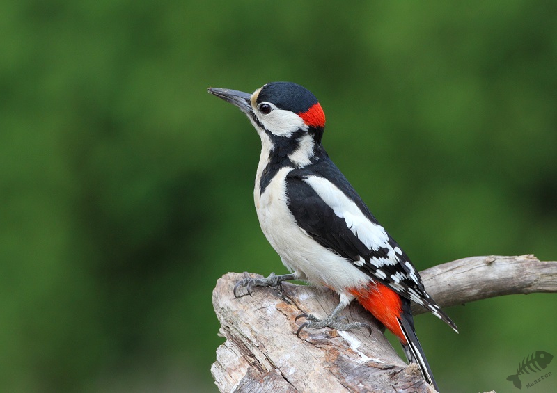 Rond half 6 zat ik weer paraat, had de setting op orde gemaakt en kon het grote afwachten beginnen. Terwijl ik bezig was met de stronkjes te plaatsen en het voer te verspreiden, hoorde ik al wel Vinken in de buurt en vloog er een Grote Bonte Specht over om te zien wat voor een lekkers ik allemaal neerlegde. Toen ik in de hut zat, heb ik eerst een kwartiertje gekeken naar de bezoekers voordat ik begon met fotograferen. Regelmatig lees je op het forum terug dat je vooral rustig moet doen als je vogels als de Sperwer of zo voor de hut wilt krijgen. Nou denk ik dat ik altijd wel rustig ben en niet loop te zwaaien met m’n lens, maar ik heb voor deze hut nog nooit een Sperwer gehad… Ik moest maar alles gaan proberen…