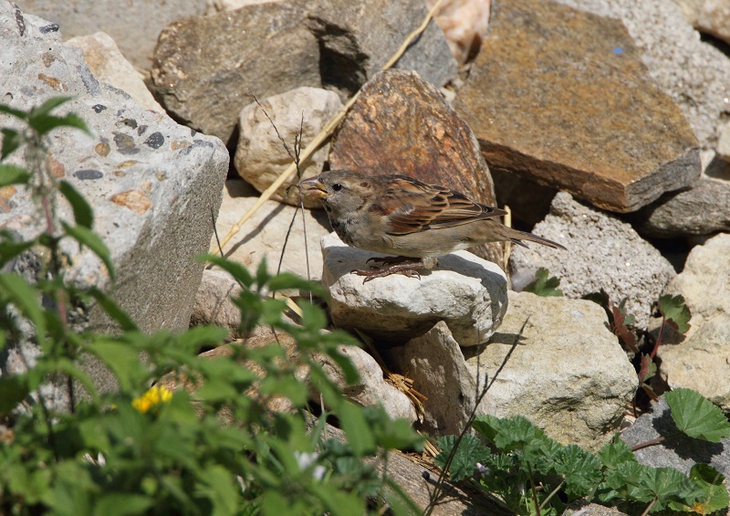 De dagen erna was er weer niet heel veel te zien geweest. Wel weer een paar mooie Vlinders en tot mijn verrassing een nieuwe soort voor mij hier: een overvliegende Dwergarend. Om de lens niet te laten vastroesten is er ook nog een foto van een Huismus gemaakt door een mede-campinggast. En de laatste 2 dagen poseerde een vrouwtje van de Roodborsttapuit nog heel fraai en kreeg ik op afstand nog twee Zanglijsters in beeld en een Graspieper. Deze laatste 2 soorten zaten bij een akker waar ik verschillende keren veel soorten gezien had en ik heb dan ook hier mijn geluk een aantal keer beproefd.