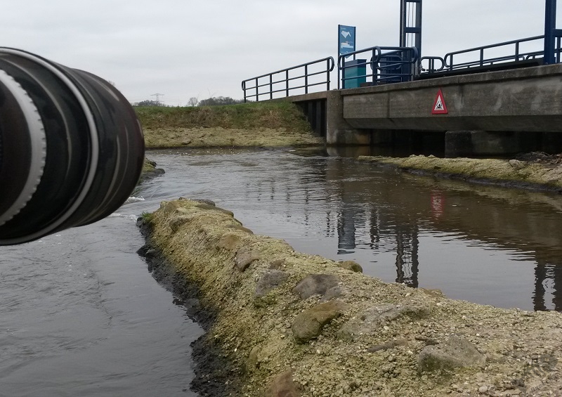 Bij aankomst bleken er weer 2 vogelaars aanwezig, waarvan er ééntje was die er de vorige keer ook was. Hij vertelde dat de vogel regelmatig te zien was geweest, maar telkens wanneer er een trein voorbij kwam, hij even onder de sluis ging schuilen.