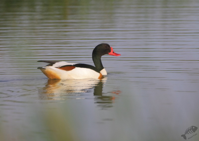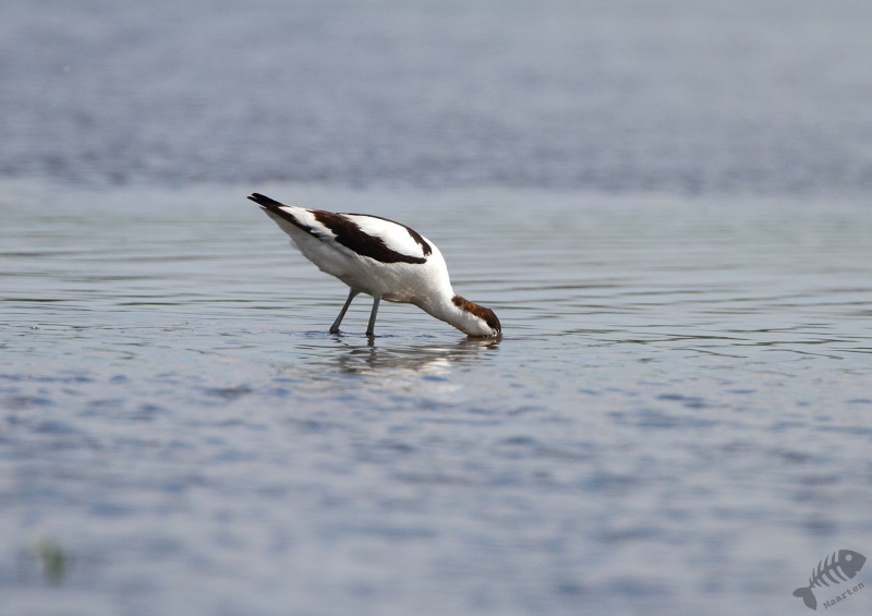Direct bij aankomst bleken de meest opvallende bewoners Kluten en Bergeenden te zijn. Kluutjes ben ik natuurlijk al wel vaker tegengekomen, maar nu leken de omstandigheden beter om ze eens mooi vast te leggen. Het eerste kwartier of zo heb ik me volop gericht op een foeragerende Kluut waarbij ik ook nog een paartje Bergeenden meepikte.