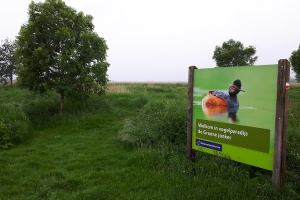 Daarna zijn we het rondje rond de plas gaan lopen in de hoop op het Porseleinhoen of de Purperreiger, die ons via het welkomstbord wel een beetje beloofd waren…