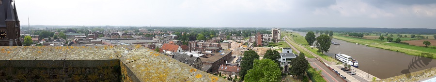 Later die maand zag ik mijn ooms en tante weer en toen kreeg ik ineens een heldere ingeving: achter de Martinuskerk staat de oude toren van de vroegere kerk. Hierin is nu een ontzettend leuk museum gevestigd over de geschiedenis van Cuijk. Vroeger had ik deze toren al eens beklommen en nu had ik dus bedacht: zou je vanaf de toren geen uitzicht hebben op de Valken?