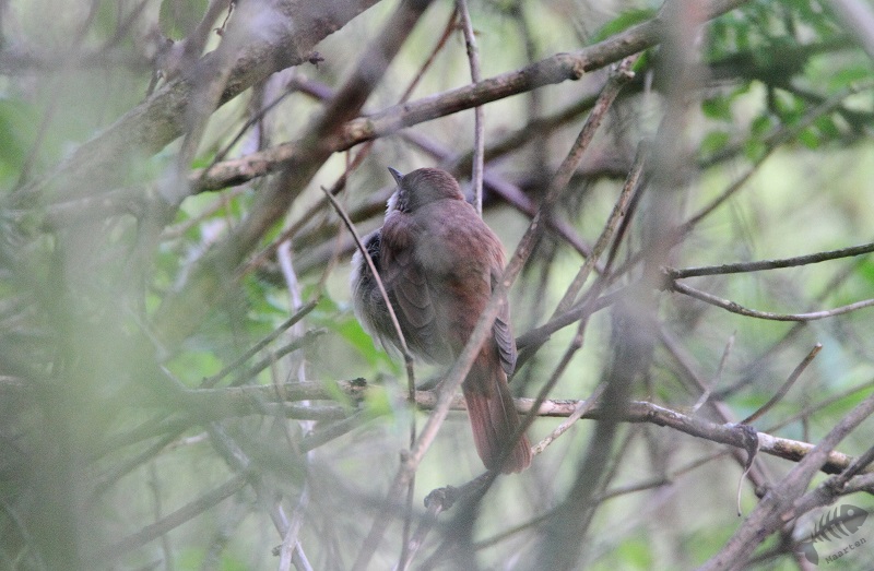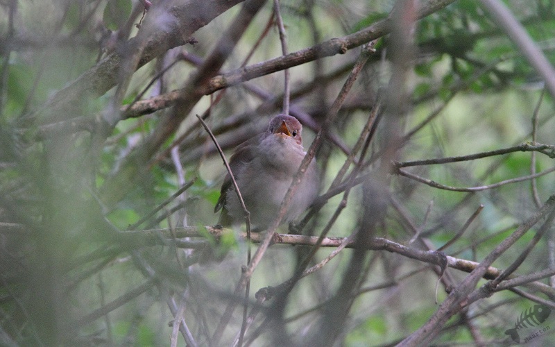 Toen ik aankwam bij de plek waar hij moest zitten, stonden er verschillende mensen te kijken en te luisteren. Ze wisten te vertellen dat ze hem wel even gehoord hadden, maar niet in beeld hadden gehad. Na een tijdje hoorde ik hem inderdaad, en de andere personen kropen bijna tussen de struiken, waardoor hij weer verplaatste. Natuurlijk vind je zo geen vogels, ze zijn niet gek!