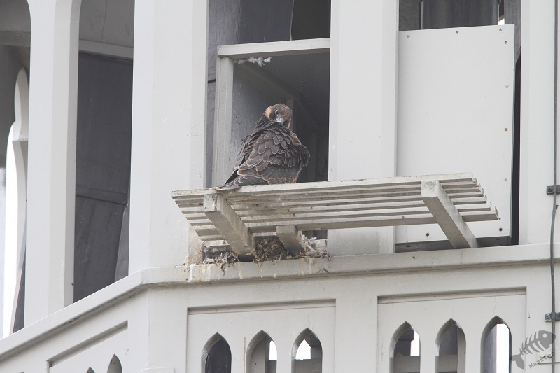Vorig jaar rond deze tijd was ik een keer bij de schuilhut aan de Kraaijenbergse Plassen in de buurt van Cuijk. Ik wist dat daar in een nestkast in een elektriciteitsmast een paartje Slechtvalken broedde en heb er ook ééntje op grote afstand zien vliegen. Er kwam toen een medevogelaar in de schuilhut en hij wist me te vertellen dat er ook een paartje broedde in de noordertoren van de Martinuskerk in Cuijk. Ik wist dat niet en had er enorme spijt van dat ik het niet eerder had gehoord. Nadeel van deze locatie was wel: je zag ze absoluut niet (ik wist ook niet zo goed waar ik moest kijken…), maar vanaf de Maasboulevard waren ze in elk geval niet te zien…