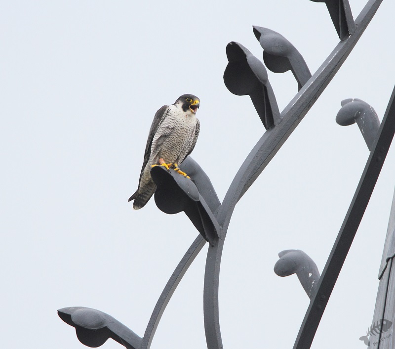 En vanaf het eerste moment was het al raak. Het vrouwtje en het mannetje hadden zich verschanst op de beide torens van de Martinus en een jong zat in de kleine toren een stuk dichterbij. Ook konden we nog een jong zien dat in de nestkast zat. De omstandigheden waren eigenlijk ideaal: er was zwaar weer op komst waardoor regelmatig het licht wat getemperd werd, wat met name bij zwart/witte vogels een voordeel is. Ik kreeg volop de gelegenheid alle dieren te fotograferen en raakte echt onder de indruk van deze prachtige vogels. Een aantal keer werden we ook nog getrakteerd op een vliegshow van het vrouwtje en een jong en hebben we ook het geluid aardig leren kennen…