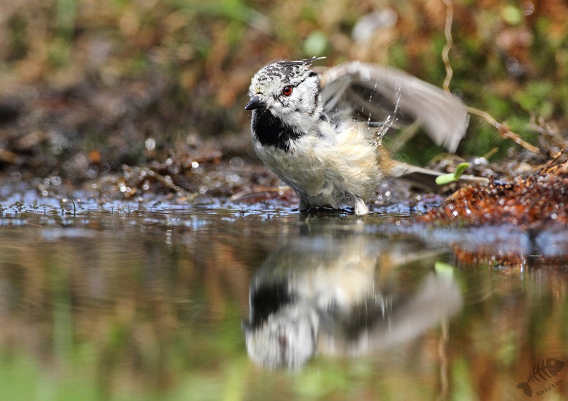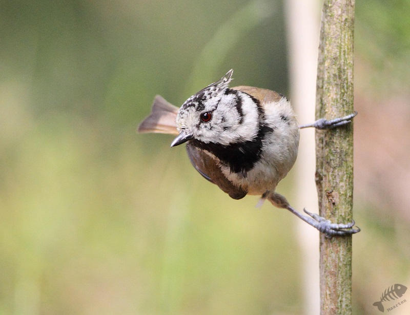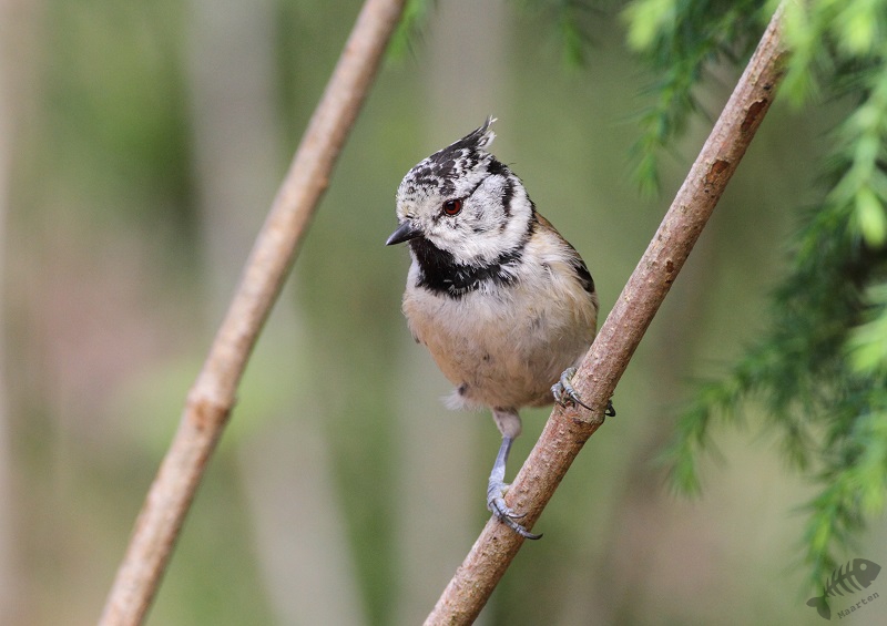 Na een klein kwartier kwamen er weer andere vogels naar de bak, waaronder een familie Staartmezen en weer een primeur voor mij: een Kuifmeesje die ik eindelijk eens goed kon vastleggen in wat verschillende poses. De dag kon níet meer stuk!