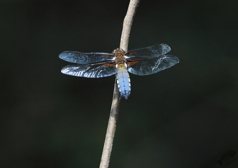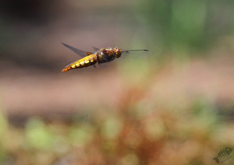 Gelukkig vlogen er toen verschillende Libellen rond die altijd de moeite waard zijn om te fotograferen en zeker een uitdaging zijn om ze vliegend vast te leggen. Toen de zon wat achter de bomen verdween, verdwenen ook de Libellen en kwamen er nog wat leuke soorten langs zoals de Geelgors en een aantal Boompiepers. En ook nog, voor de derde (!) keer een Sperwer. Nu was zijn verblijf maar heel kort, maar was het geweldig hem nog een keertje te zien.