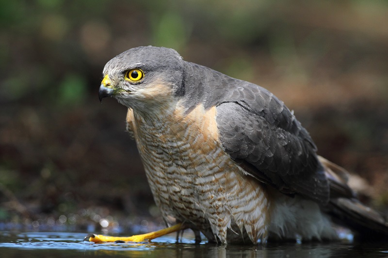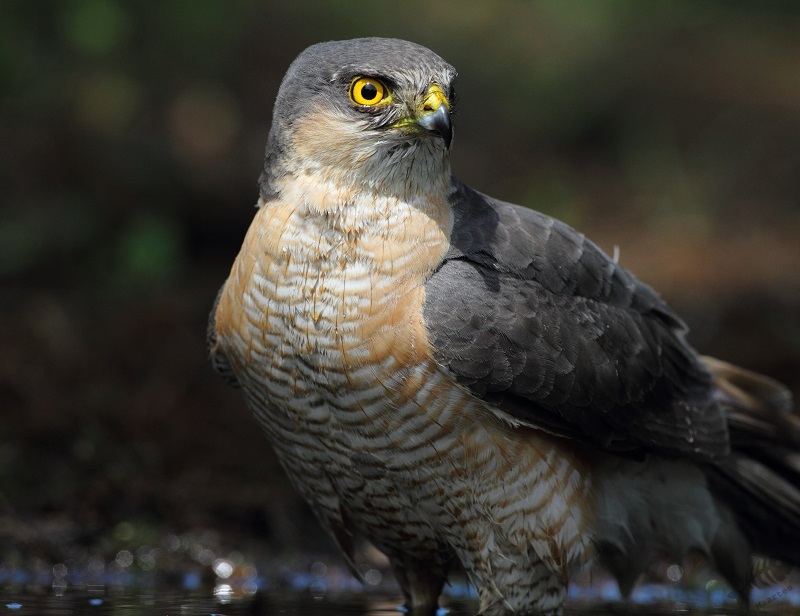 Weer werd het rustig en plots uit het niets verscheen, precies een uur na de eerste keer, de Sperwer weer! het werd een herhaling van zetten. Ik deed héél voorzichtig, hij ook. Maar het leek of hij zich nu wel meer op zijn gemak voelde, want nu bleef hij wat langer zitten en heeft zich echt lekker kunnen opfrissen. Ik kreeg nu meer de gelegenheid hem vast te leggen, waarbij het licht ook nog eens perfect meewerkte. Eindelijk had ik de foto’s waar ik al tijdje op hoopte. Na zo’n 10 minuten vertrok hij weer, waarna het rustig bleef.