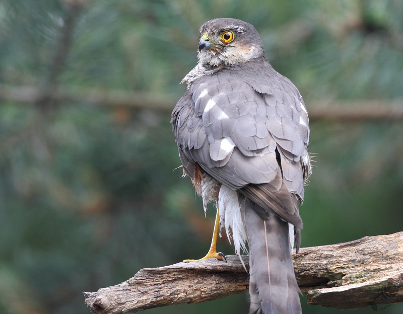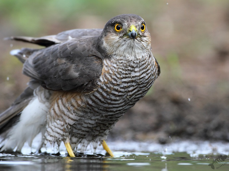 Voor het eerst in al mijn bezoeken aan de Lemelerberg verscheen er een Sperwer in de waterbak! Sinds de eerste keer dat ik een hut bezocht, weet ik dat je dan rustig moet afwachten tot de vogel zich vertrouwd voelt en dan kun je rustig beginnen met fotograferen. Ik zat net heel ongemakkelijk toen de vogel verscheen, maar durfde niet te bewegen dus, dus ik moest dit maar even volhouden. Een aantal keer heb ik om de camera heengekeken en zag dat het dier zeer oplettend was. Hij deed een paar was bewegingen en vloog toen naar een tak om vrij snel weer te vetrekken. Ik had hem! Maar ik had het gevoel dat er meer in had kunnen zitten…