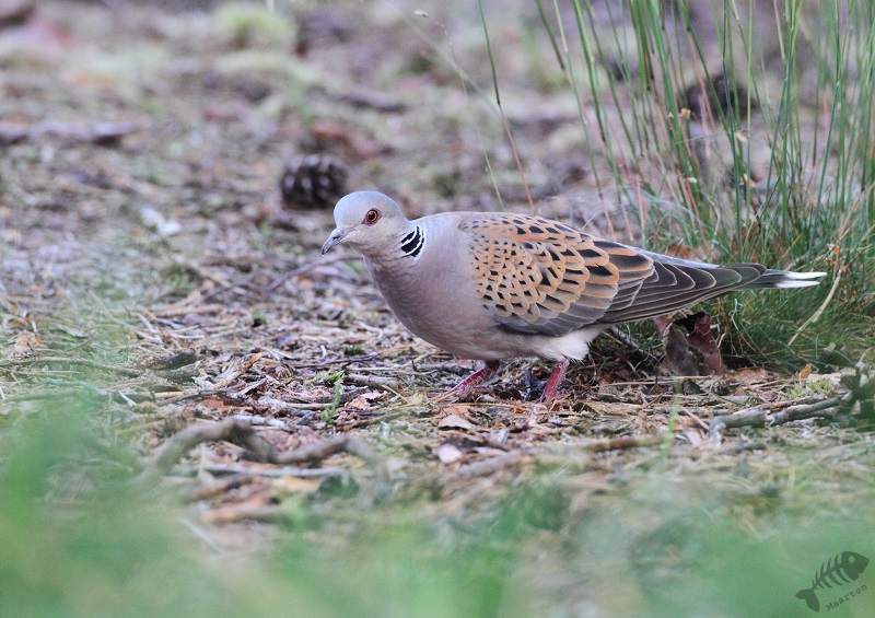 In het begin was het heel rustig. Het is de truck om vanaf het begin al niet te veel te zwaaien met je lens omdat de bomen ogen hebben en je van alle kanten bespied kunt worden… Het eerste uur heb ik 1 foto van een Vink gemaakt, maar verder heb ik dus rustig zitten afwachten. En dat loonde! Ineens kwam er een Zomertortel die eerst op afstand achter de bak wat rondscharrelde, maar iets later toch dichterbij kwam, zodat ik deze prachtige Duif eindelijk eens mooi kon afbeelden. Daarna kwam het lekker op gang. Eigenlijk hebben er toen de hele tijd wel vogels gezeten, waarbij er opvallend veel Merels en Zanglijsters waren. Ook kwam er een Eekhoorn wat drinken en zo rond half 10 werd het weer rustig voor bijna een uur. Ik heb wat zitten experimenteren met het maken van foto’s met m’n telefoon, waarna ik weer rustig verder kon tot 11.45…