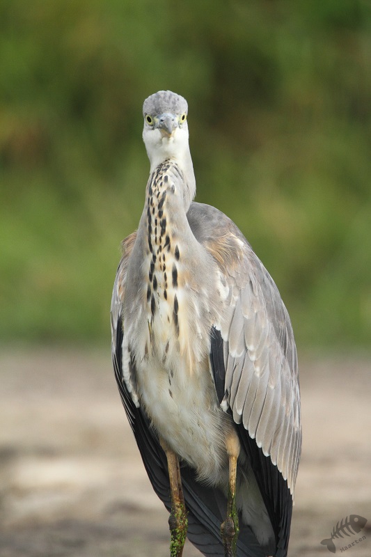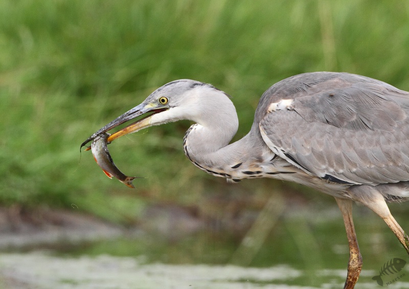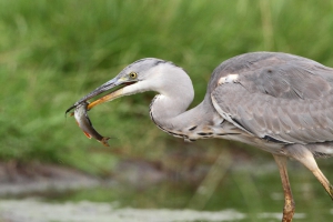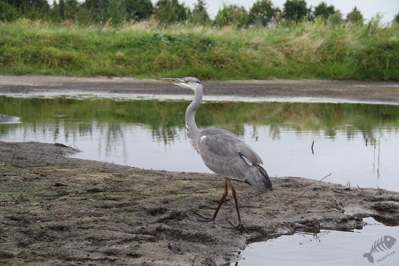 En eigenlijk weet je dan wel wat er gebeurt…: het kan eigenlijk alleen maar tegenvallen. Een groot deel van de tijd heeft een Blauwe Reiger me wel beziggehouden en heeft hij me zijn vissersskills laten zien. Hij stapte regelmatig rond over het hele terrein voor de hut, alles afspeurend naar prooi die hij tot 3 keer toe ook te pakken kreeg. Hij klom ook een aantal keer een dijkje op, misschien opzoek naar muizen, maar deze heb ik hem niet zien vangen.