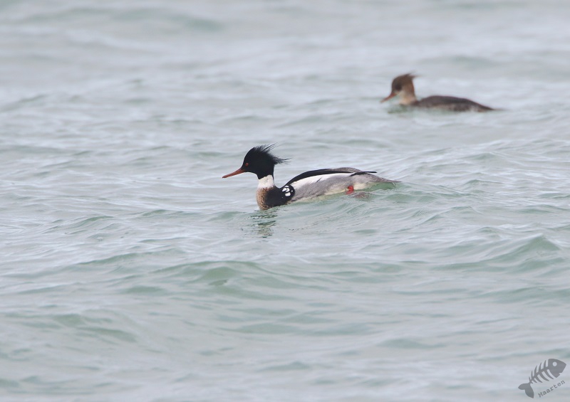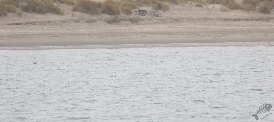 Vanaf de spuisluizen zag ik richting het zuiden, voor het strand, Duikers zwemmen. Ze leken redelijk in de buurt van het strand te zwemmen en dat leek me voldoende reden om te gaan zien of deze prachtige vogels te fotograferen waren. We zijn het strand opgelopen en in eerste instantie bleef de afstand eigenlijk net te groot. Toen ik wat verder liep, dook er één behoorlijk in de buurt op en kreeg ik de plaatjes waar ik hoopte. Wat een mooie dieren! Ze hebben me een hele tijd bezig weten te houden, totdat we bedachten dat we richting huis zouden gaan.
