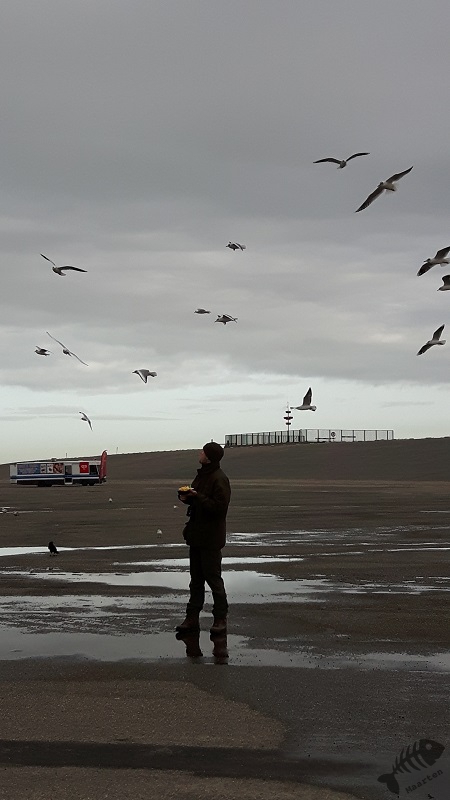 Bij de sluizen aangekomen bewees Arie hoe Hitchcock waarschijnlijk aan zijn inspiratie voor “The Birds” is gekomen: haal een frietje bij de spuisluizen op de Brouwersdam!