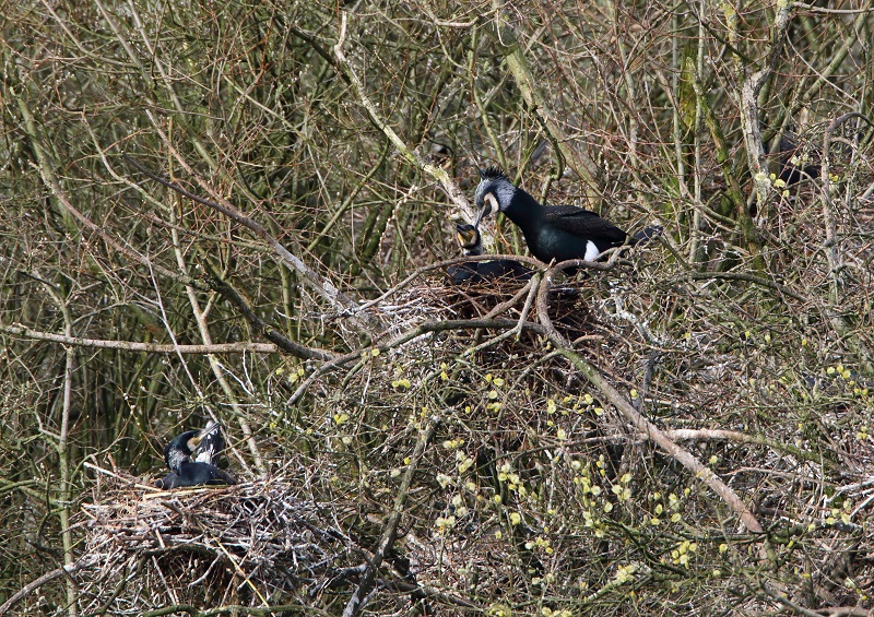 En het was daar goed. De Aalscholvers hadden volop de Lente in hun kop en droegen hun mooiste pak. Het was even leuk wat opnamen van ze te maken en van drukdoende Lepelaars die hun nesten aan het bouwen waren. Ook Blauwe Reigers waren op hun mooist en druk en na het fotograferen van verschillende Eenden, ben ik weer richting huis gegaan.