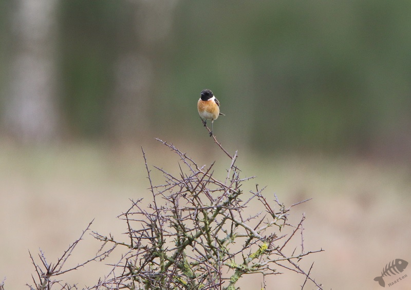 Dus ben ik 10 dagen later nog een keer gegaan. Ook nu liet de Boomleeuwerik zich goed horen, maar groot verschil met de eerste keer: nu landde hij wel een keer zichtbaar en kreeg ik hem zo in beeld waarop ik gehoopt had. De missie was al meteen geslaagd! Omdat het aan andere soorten nu ook weer rustig bleef, wel weer een Roodborsttapuit: altijd mooi, ben ik naar de Blauwe Kamer gereden om te zien hoe het bij de Aalscholvers was.