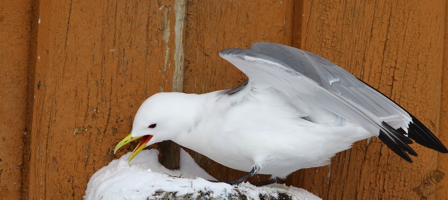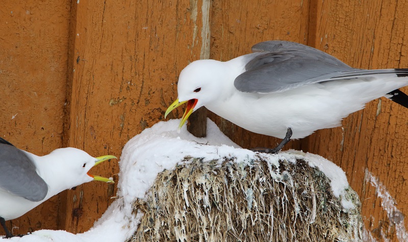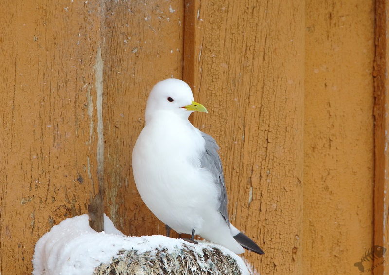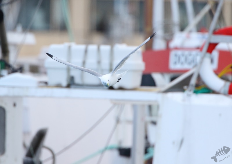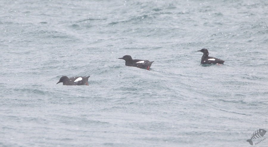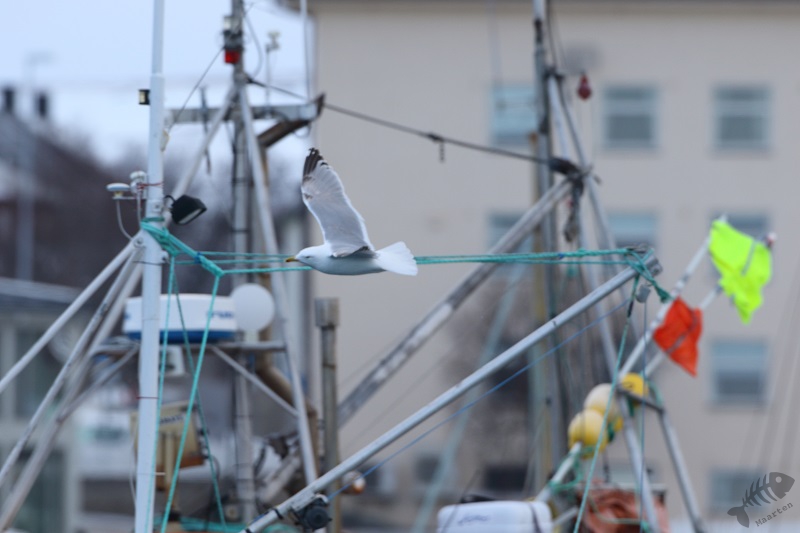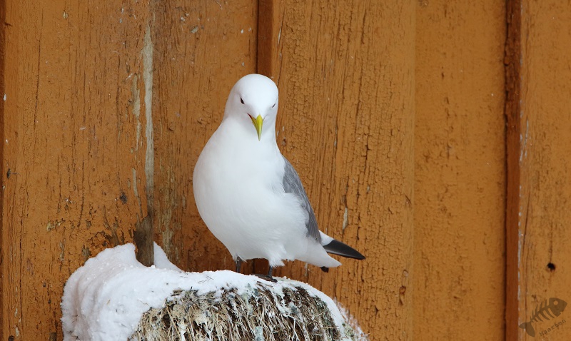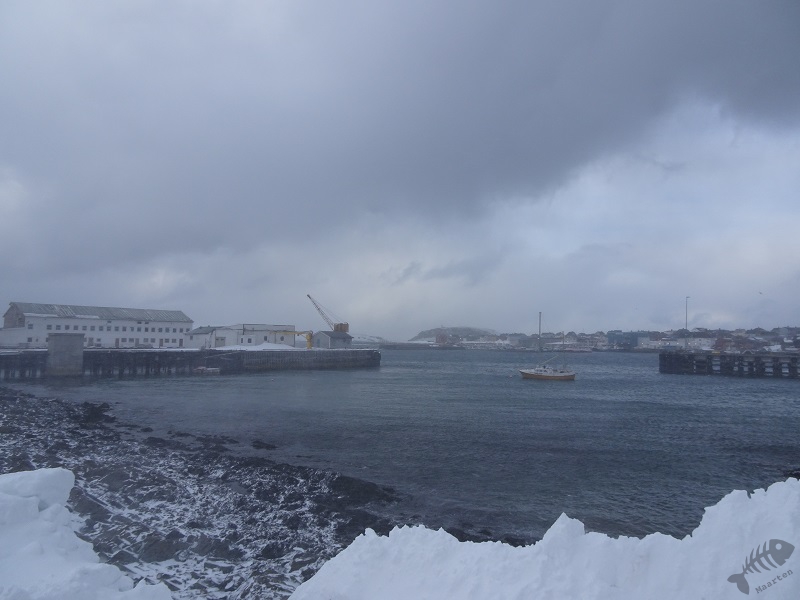 Ik ben als eerste naar de haven gereden, aangezien ik gelezen had én gebleken was dat dit zeer interessante plekken kunnen zijn. Bij de eerste stop en het eerste uitzicht trof ik direct een nieuwe soort: de Zwarte Zeekoet. Er zaten er 3 midden in de haven, waardoor de afstand wel wat groot was, maar ik was er heel blij mee. Verder zag ik nog een prachtig mannetje van de IJseend, maar een nieuwe sneeuwbui noodzaakte me om een droge plek op te zoeken en ben ik ergens gaan lunchen. Toen leek dat het weer even droog was, ben ik weer rond de haven gereden en vond een kleine kolonie Drieteenmeeuwen op het museum van Vardø. Ik had foto’s in het boek gezien van deze vogels en vond het erg leuk ze in het echt te kunnen zien. Alleen hun geluid is al zo fantastisch…