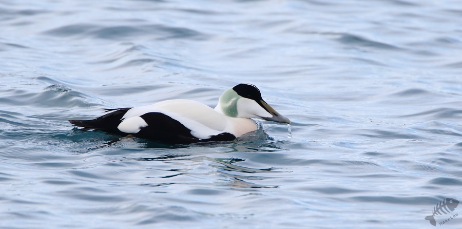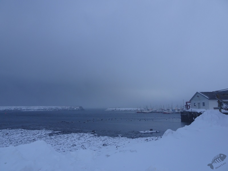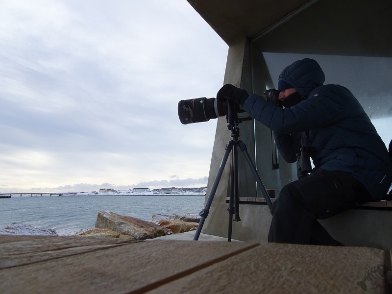 - Båtsfjord: 1 Van de wenssoorten deze reis is de Koningseider. In de haven van Båtsfjord zou deze in de winter in groten getale te vinden moeten zijn. In de haven is er ook nog gelegenheid een dag in een drijvende schuilhut te gaan zitten, maar vanwege het vroege tijdstip dat ik dan moest gaan én de hoge kosten zag ik daar maar vanaf. Ik wilde het gewoon gaan proberen vanaf de kant in de haven.